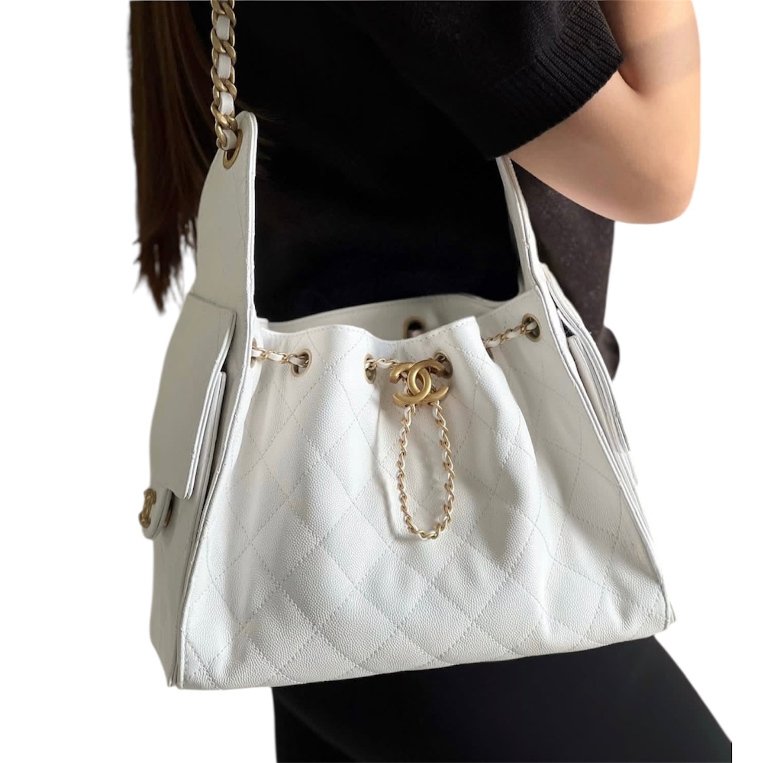 white Chanel Hobo Bag in caviar leather